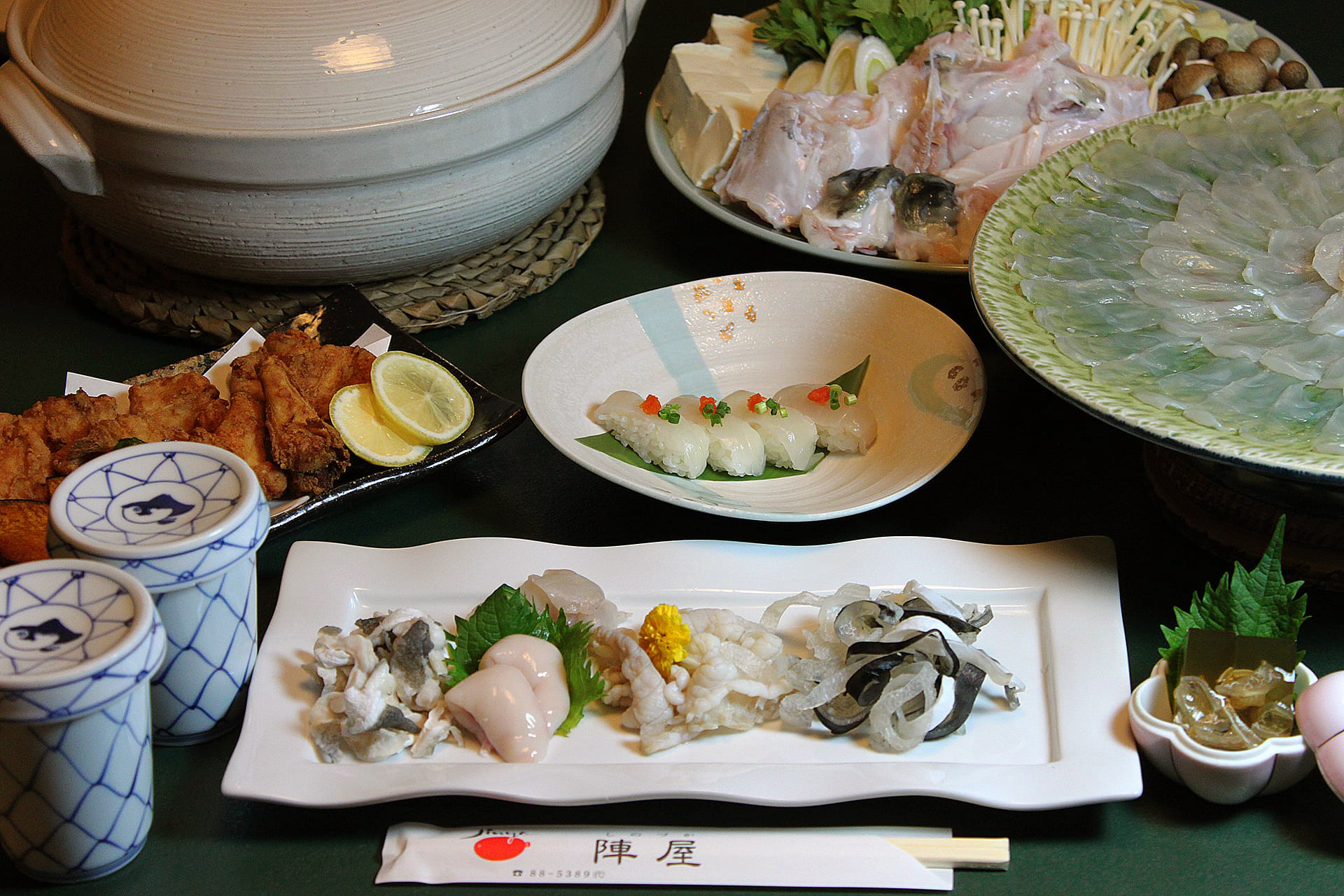 ひれ酒 / 刺身 / 唐揚げ / 握り / 鍋 / 雑炊