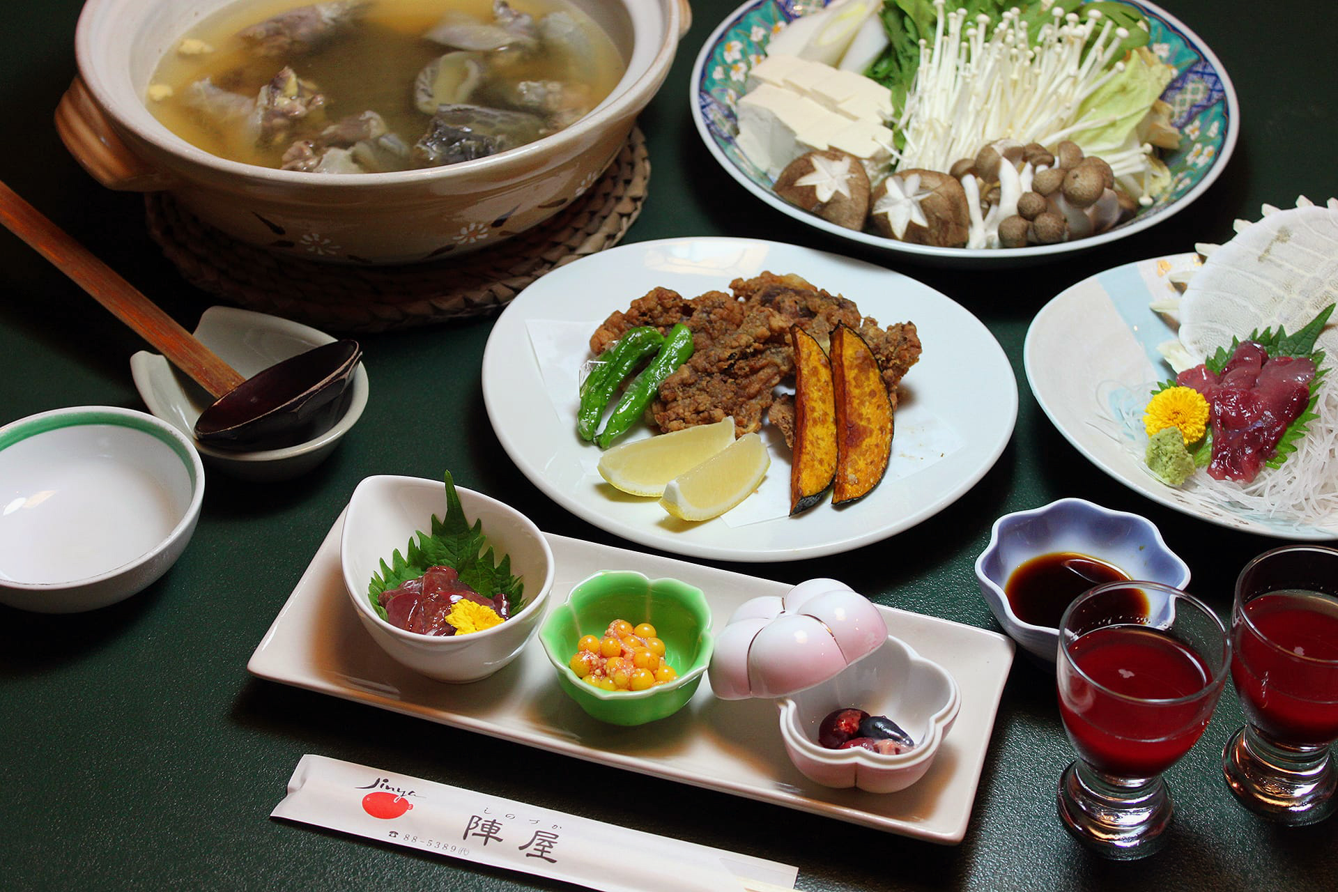 生き血 / 刺身 / 唐揚げ / 鍋 / 雑炊